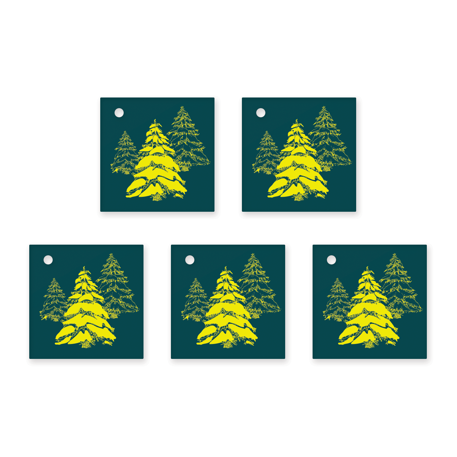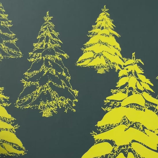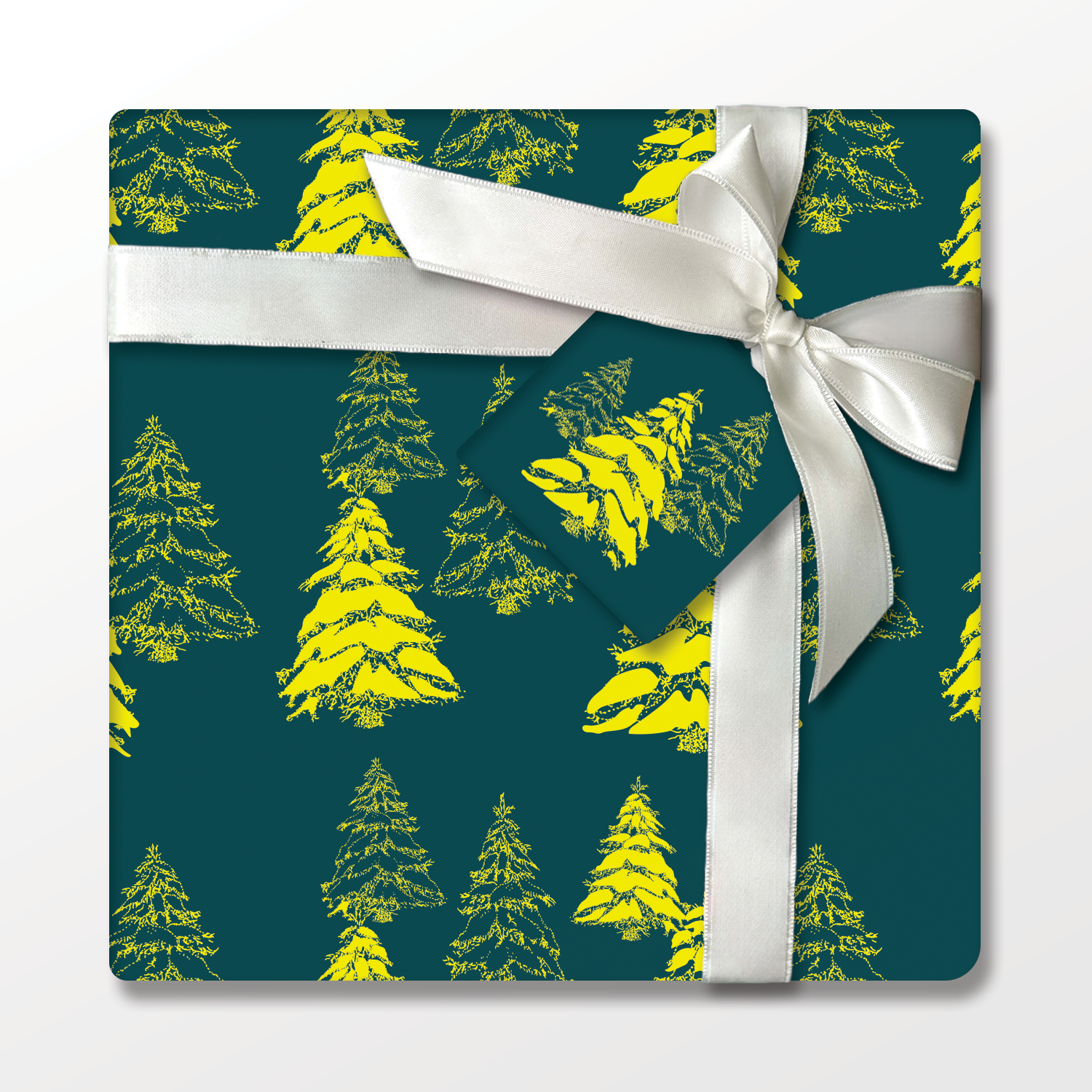 Vivid chartreuse trees on deep green — a bold, modern twist on the classic Christmas tree. Don't forget to add a set of 5 matching gift tags.