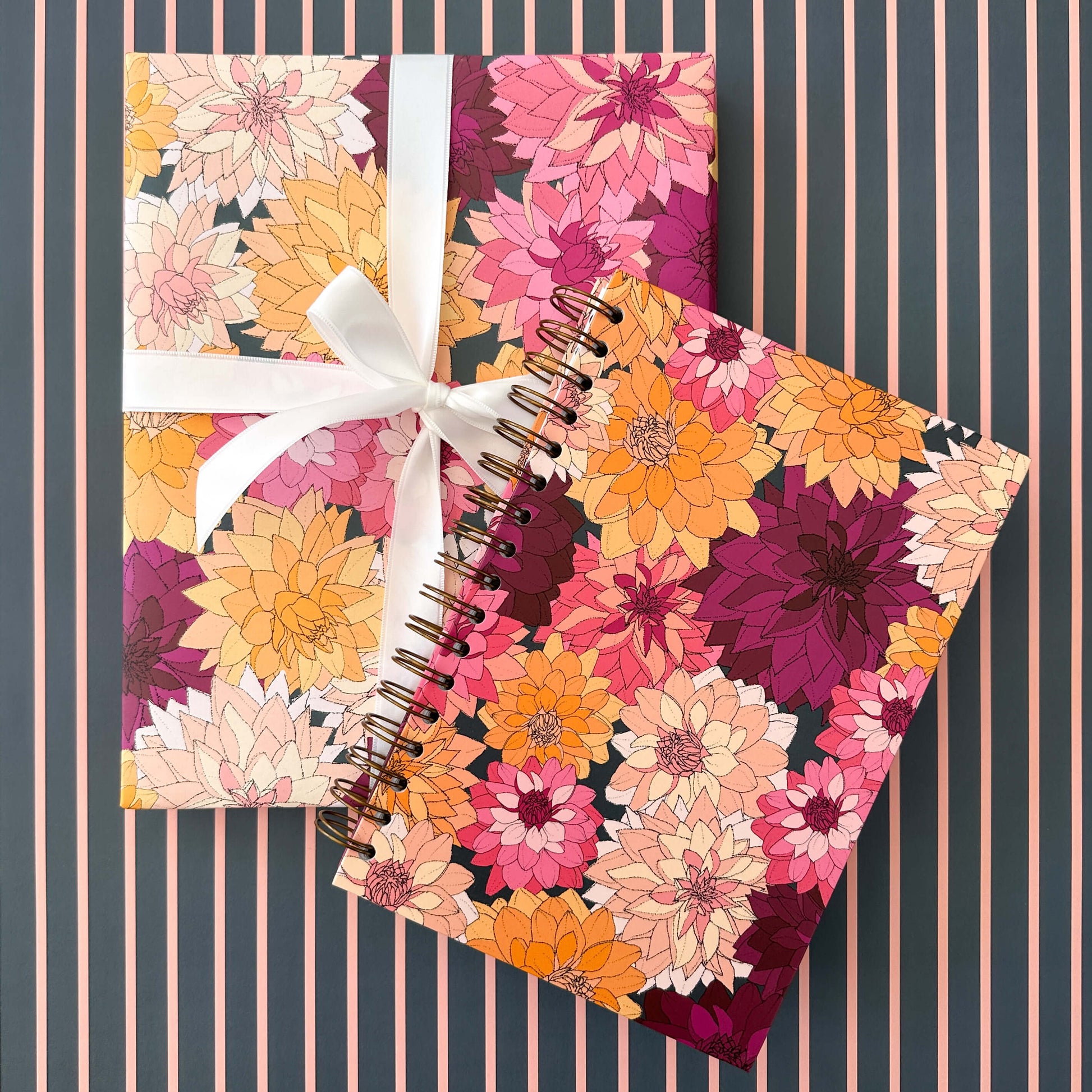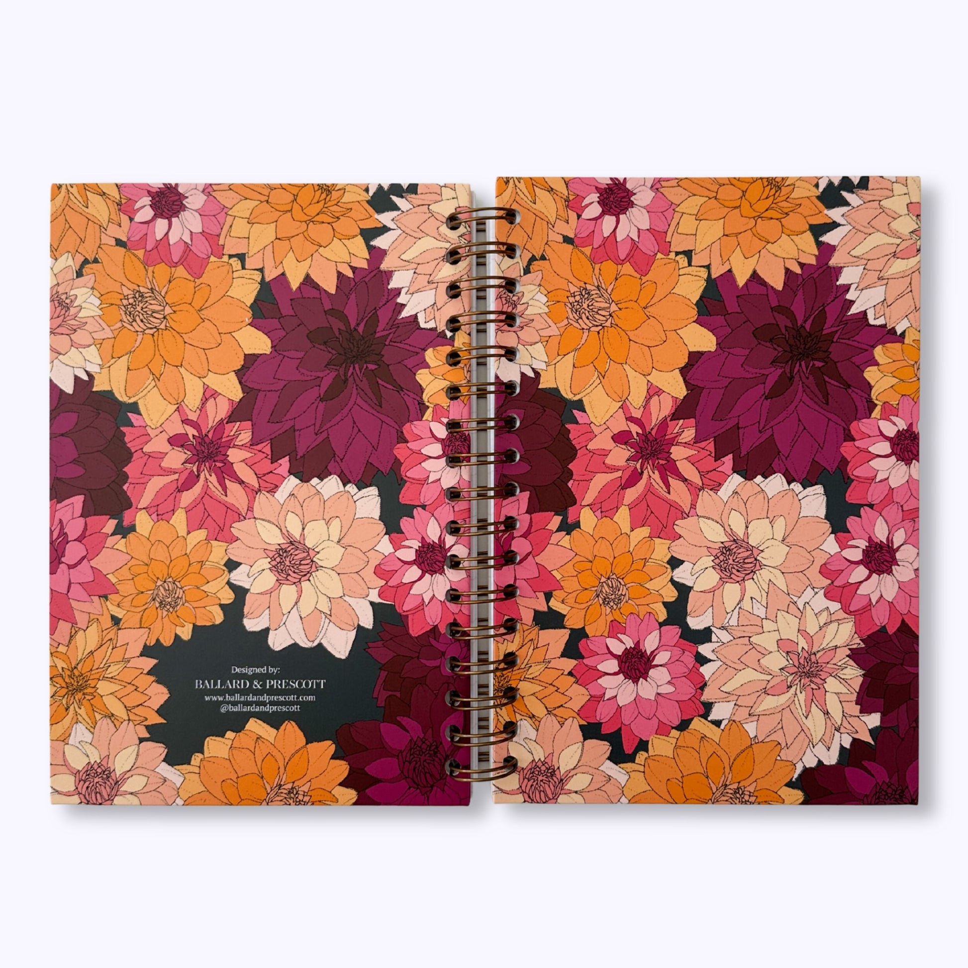 Ballard & Prescott’s Dahlia Journal features a detailed illustration of an exquisite bouquet of dahlias. With a wide array of colors—from pale peach to marigold to deep raspberry—this design celebrates the vast variety of this flower.