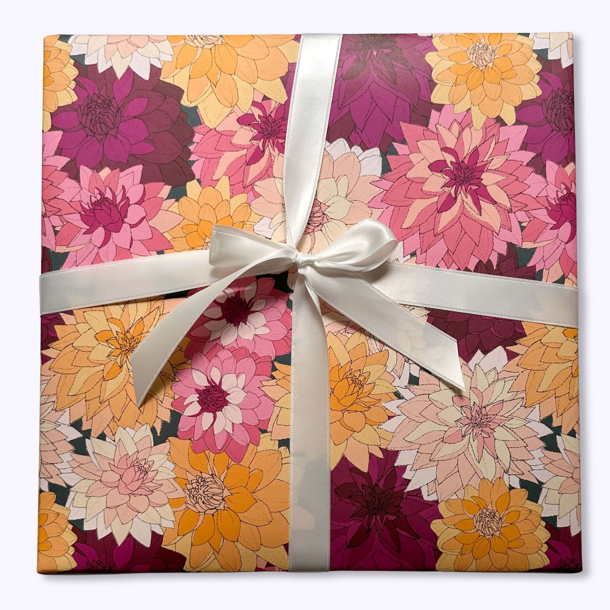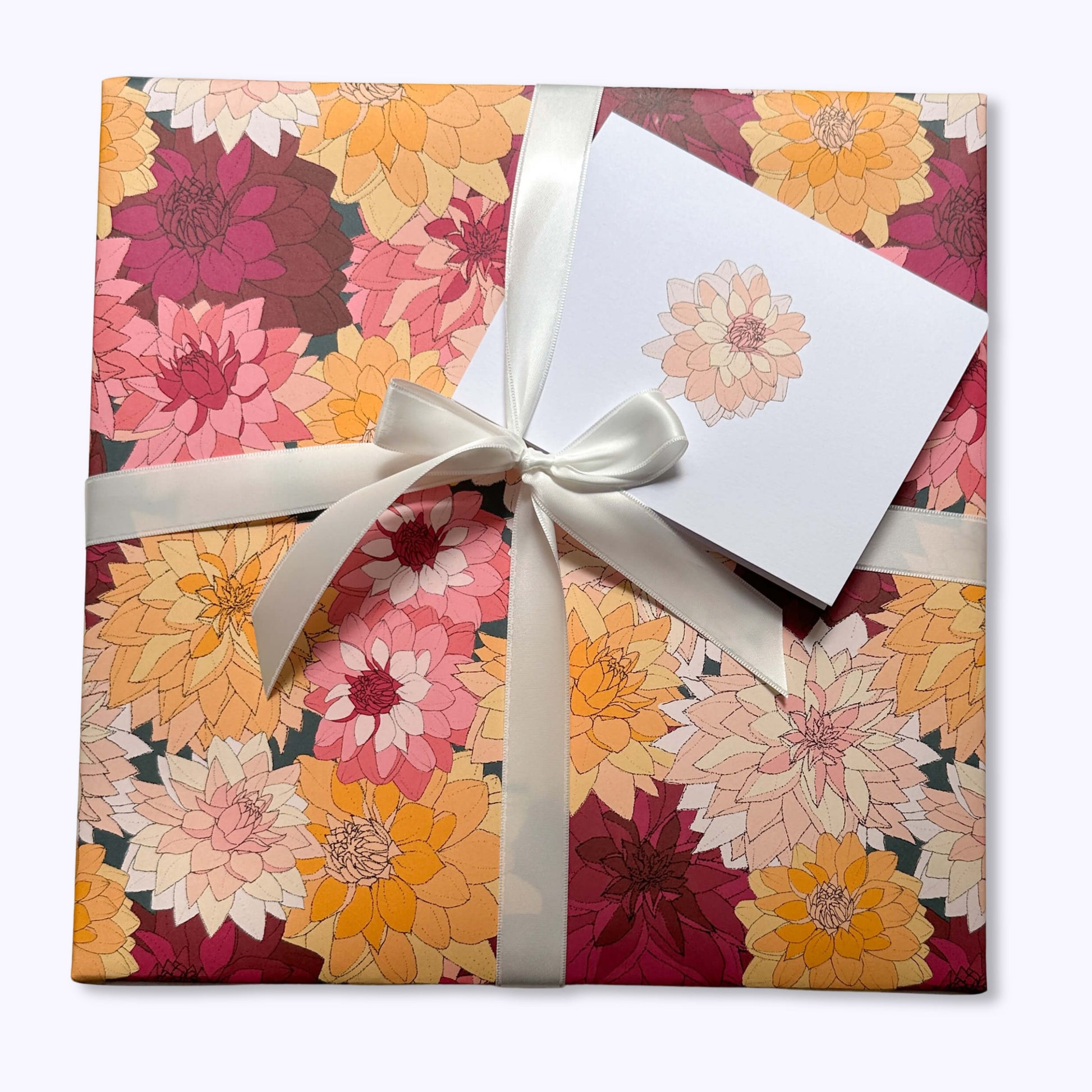 Every gift set arrives beautifully wrapped in our custom floral paper, featuring the same gorgeous dahlias as the journal. We make gifting easy—just add your personalized message at checkout, and we’ll handle the rest.